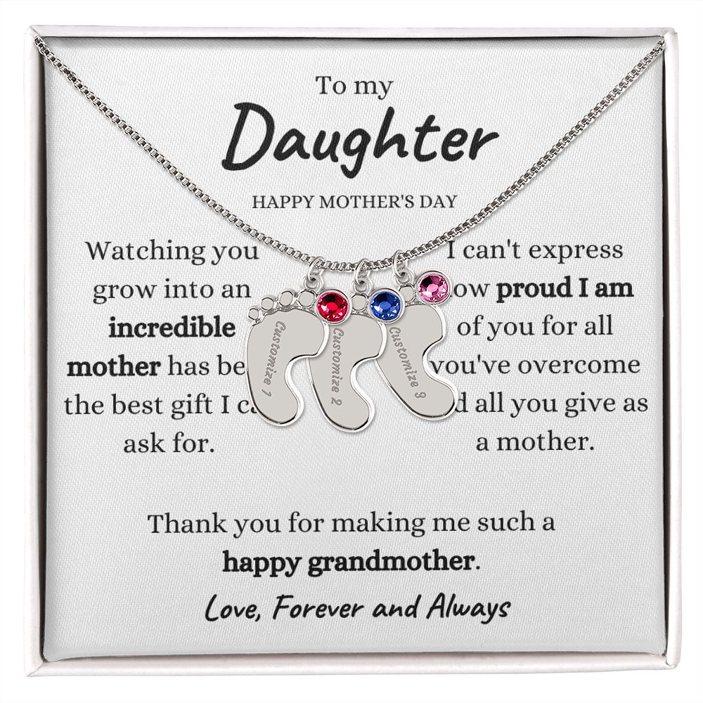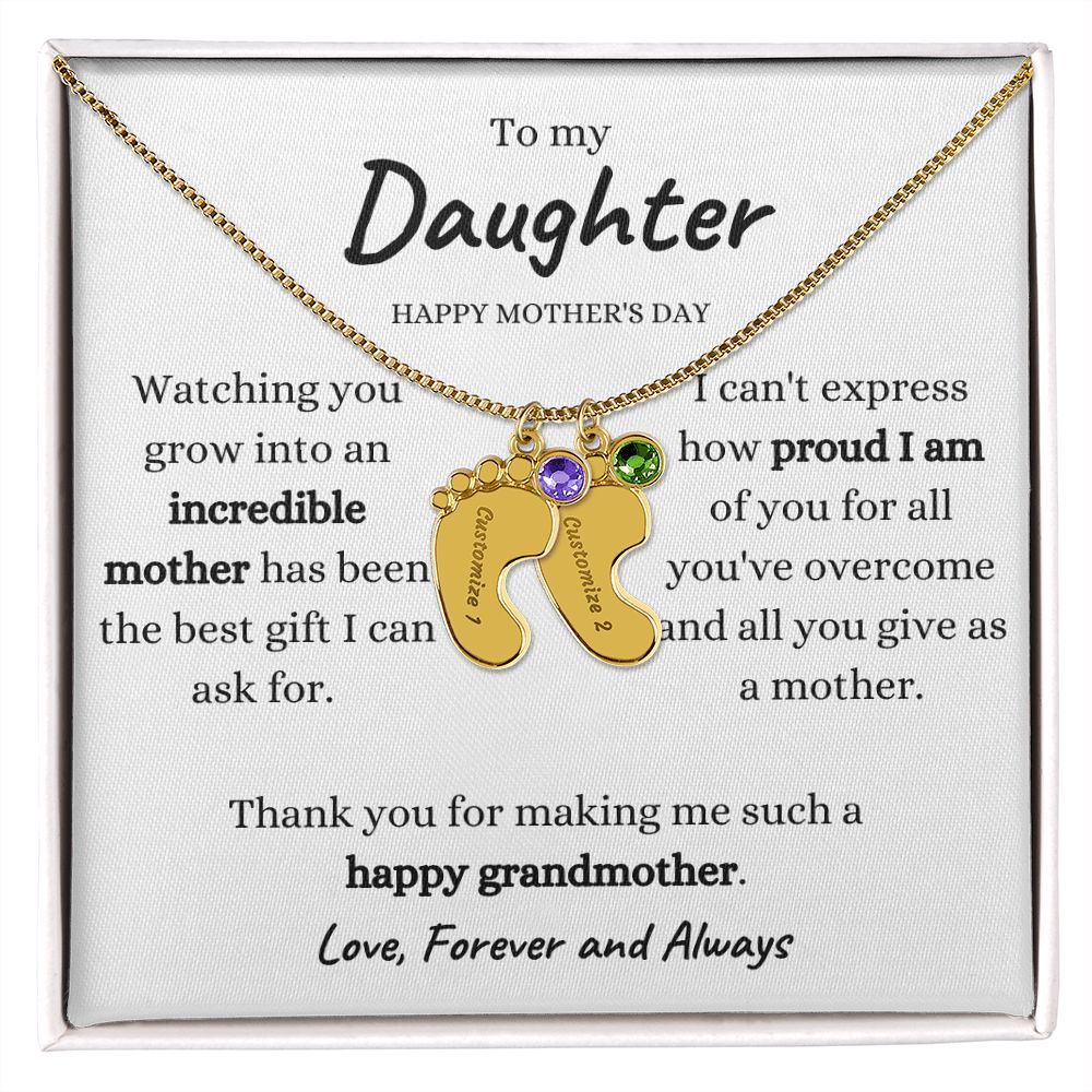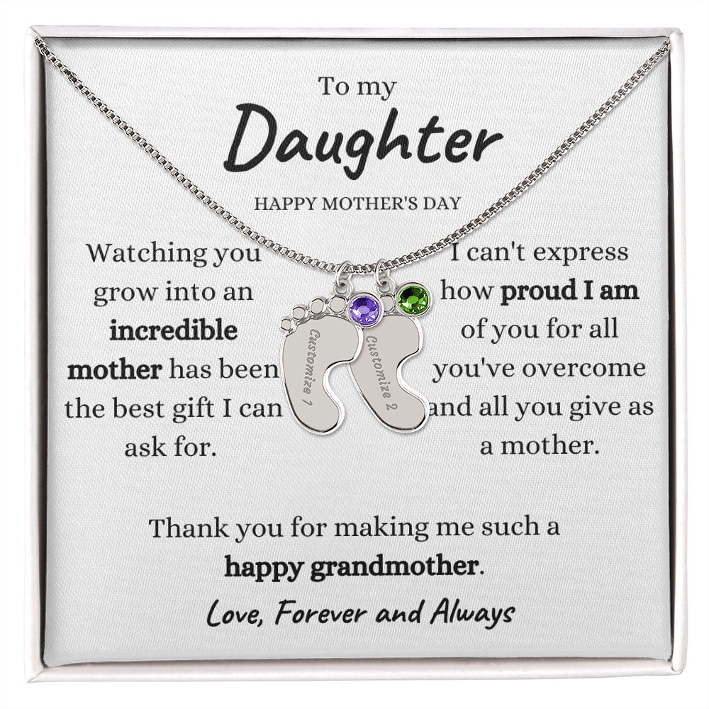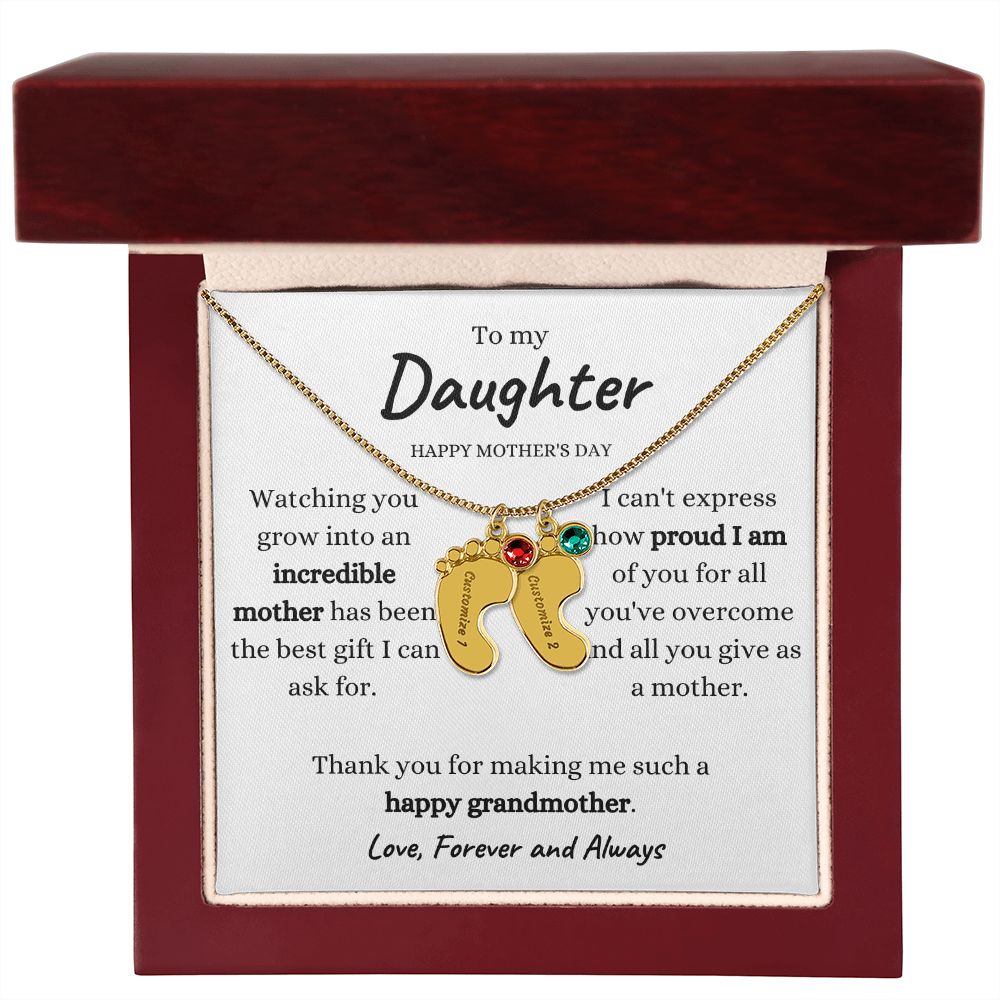 Engraved Baby Feet Gift with Birthstones and Custom Engraving for Daughter
